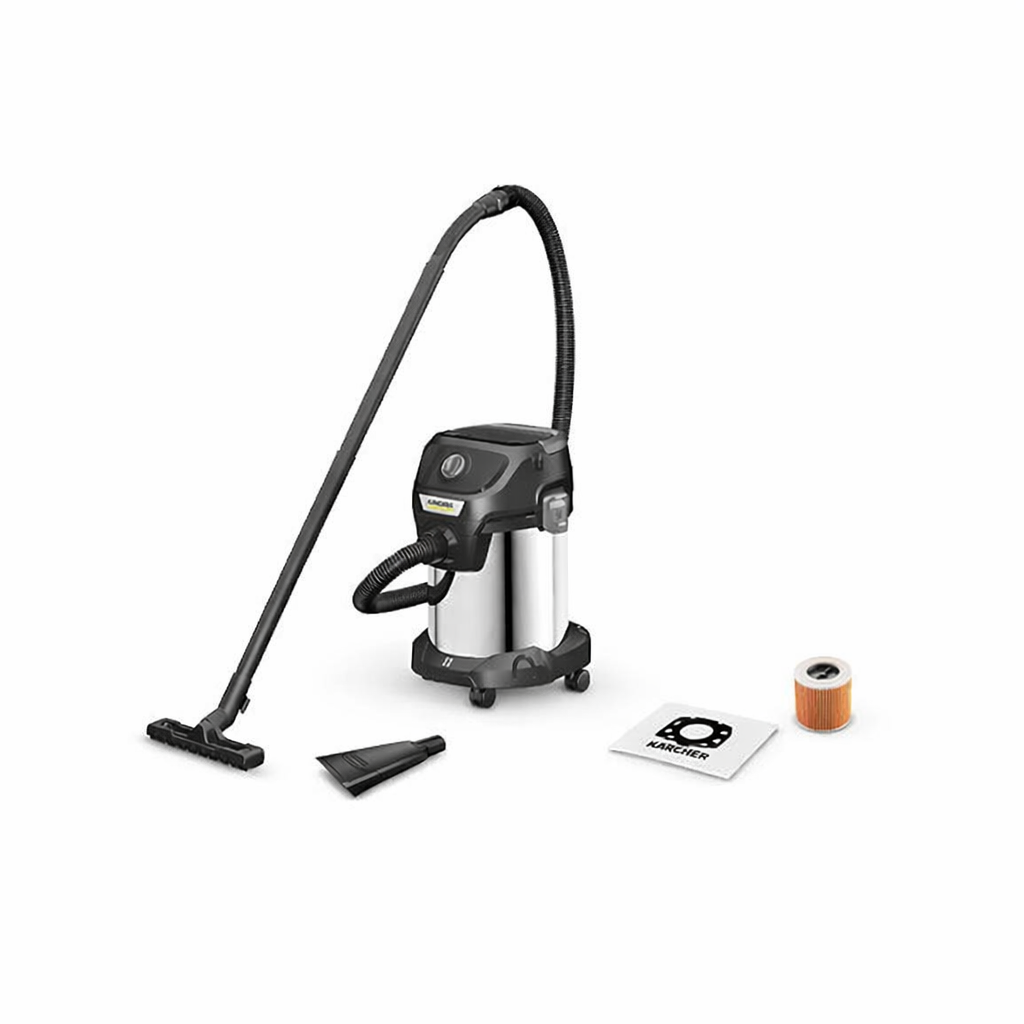 A vacuum cleaner is a versatile device for both dry and wet cleaning. Powerful and energy-efficient, it easily handles all types of debris — from dust to water. It features a 17L stainless steel container, a blower function, and a convenient accessory storage system. Perfect for use at home, in the garage, or for cleaning your car. A new filter bag is included in the rental, and additional attachments are available upon request.